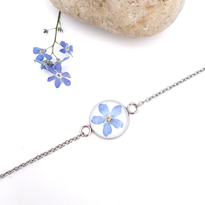 Drobný oceľový prívesok, v ktorom je živicou zaliata maličká nezábudka na jemnej tenučkej retiazke. Náhrdelník je jemný, nežný a romantický, vhodný pre dcéru, sestru, mamičku a pre jeho jemnosť je skvelý aj pre nevesty :)
