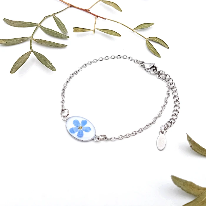 Veľmi elegantný, tenučký retiazkový náramok, na ktorom sú navlečené malé guľôčky, ktoré vznikli z lupienkov skutočných kvetov.
