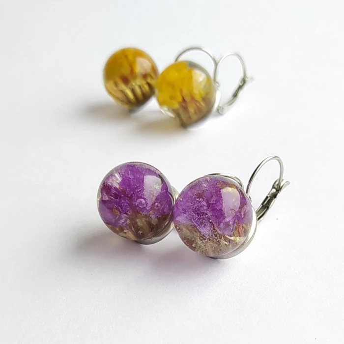živicová guľôčka: priemer cca 1,5 cm v mieste, kde je vsadená do náušnicového lôžka je zbrúsená
