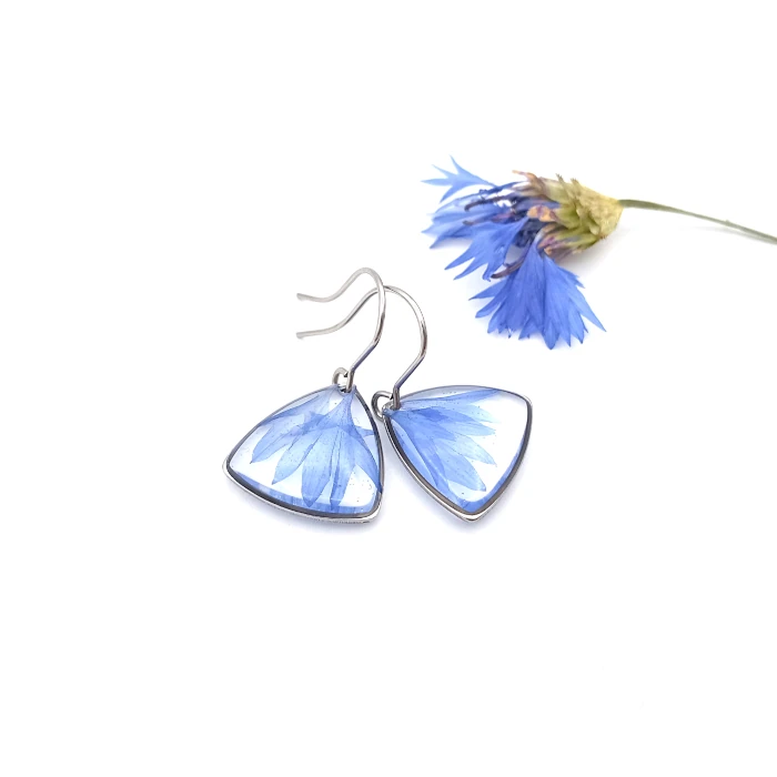 Zaliate živicou sú skutočné kvietky, preto je každý jeden originálny a jemne sa od seba odlišujú. Náušničky je možné na požiadanie zavesiť aj na zatváracie háčiky.