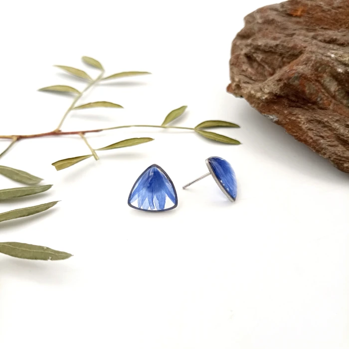 Trojuholníky sa budú od seba mierne odlišovať, uložením lupienkov v živici, veľkosťou a trošku farbou, nejde vyrobiť dva rovnaké kúsky keďže sa jedná o ozajstné kvietky.
