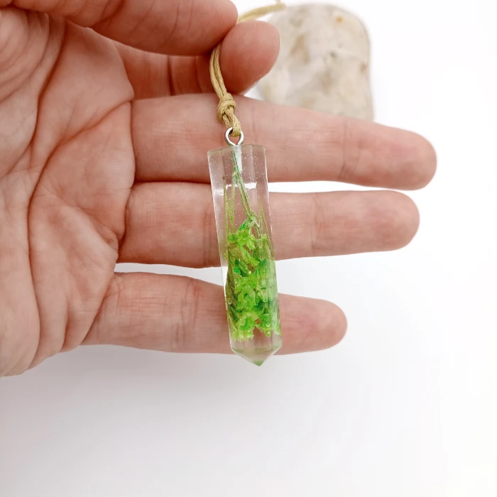 Živicový prívesok so zeleným kvietkom / rastlinkou