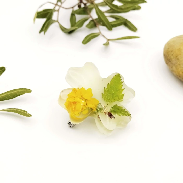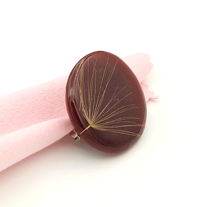 Brošňa z živice so zaliatym padáčikom rastliny tragopogon