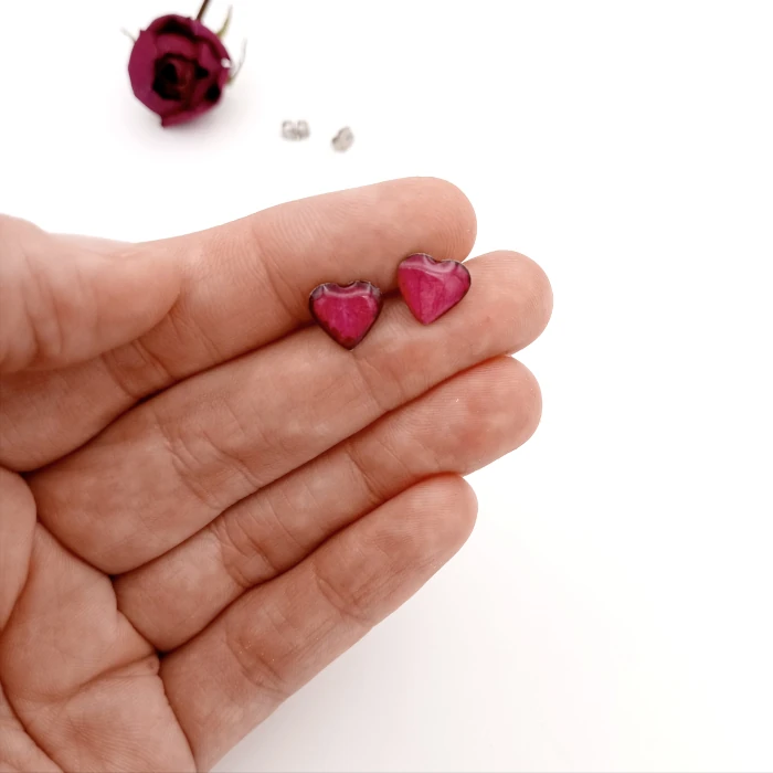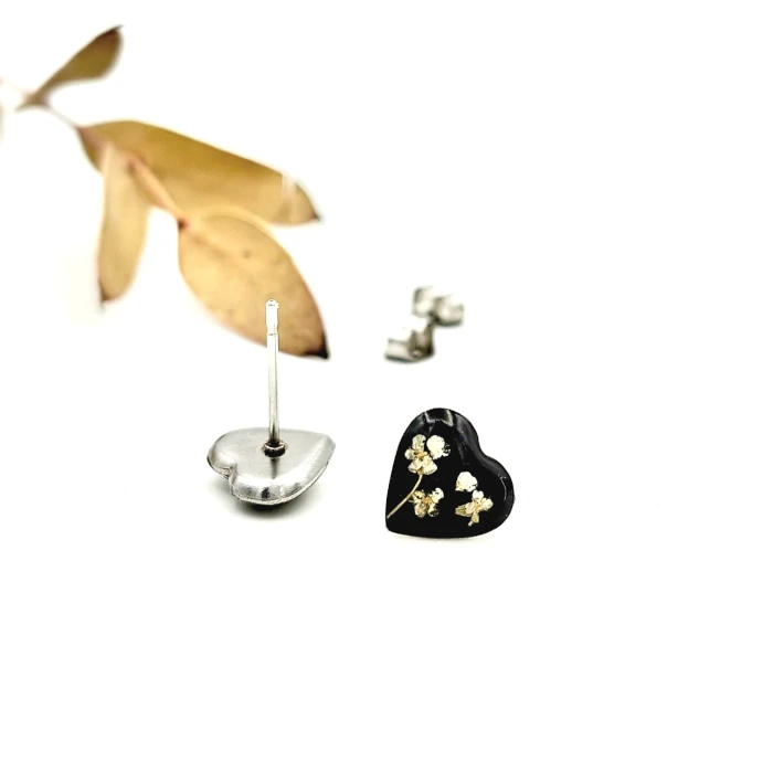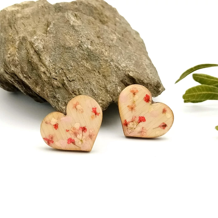 Drobulinké puzetové srdiečka, tzv. napichovačky so skutočnými kvietkami, ktoré sú zaliate živicou.