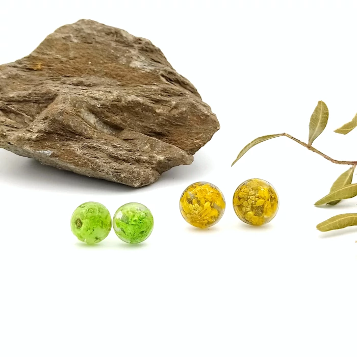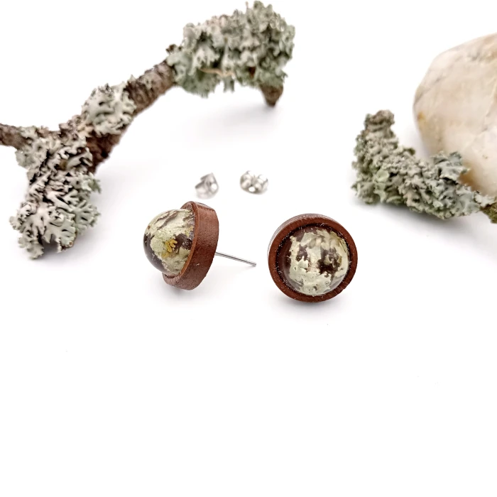 Živicové guľôčkové náušnice s lišajníkom - puzetové aj visiace