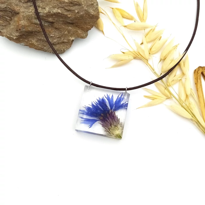 Živicový prívesok s kvietkom na oceľovej retiazke