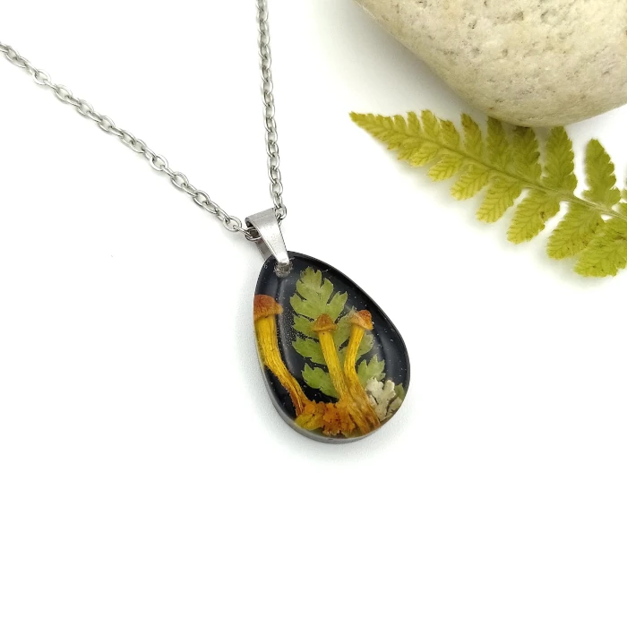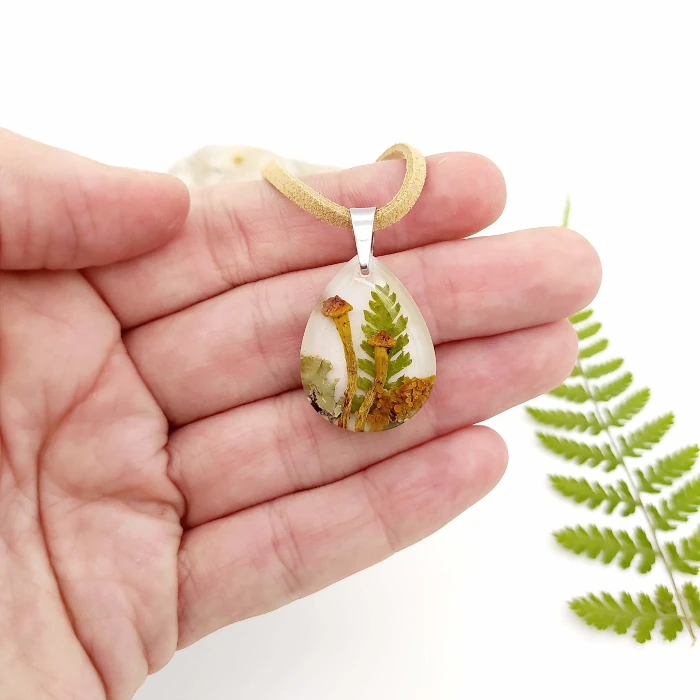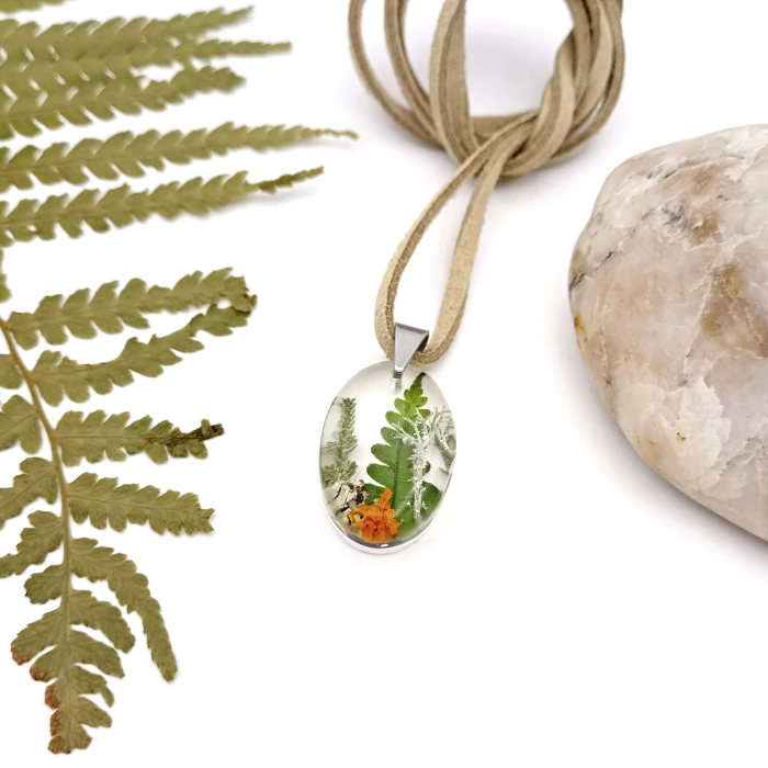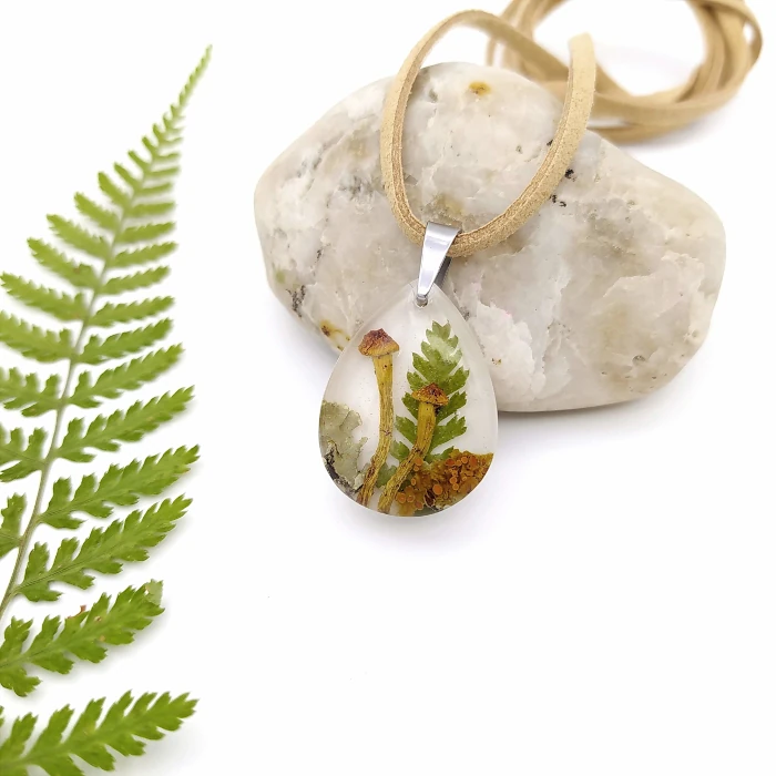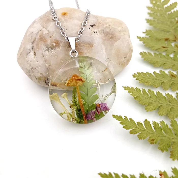 Jedinečný prívesok, v ktorom sa ukrýva naozaj kúsoček lesa - paprade, machy, lišajníky, lístočky...