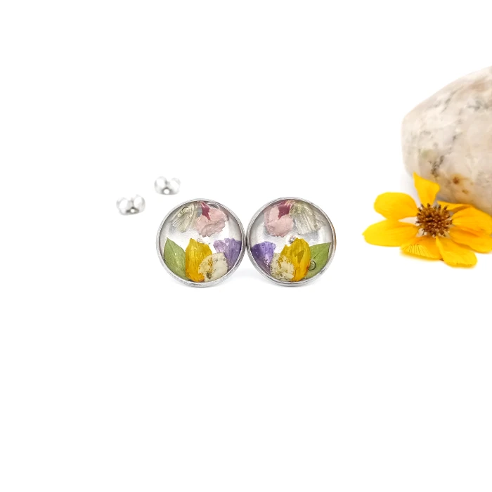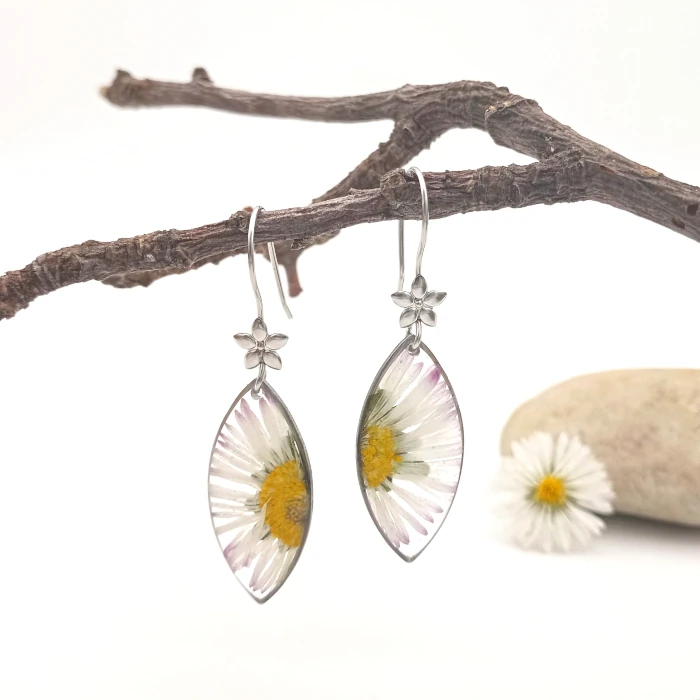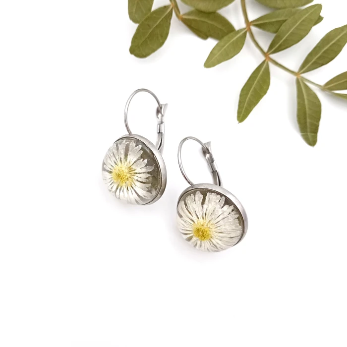 Skutočné kvietky zaliate v živici v náušniciach starobronz