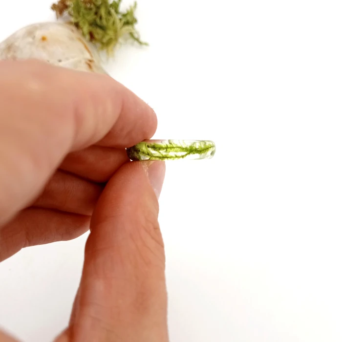 Jednoduchý prírodný prstienok s lišajníkom zaliatym v živici