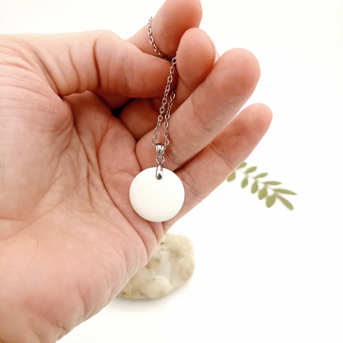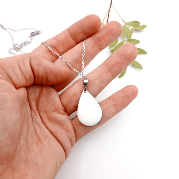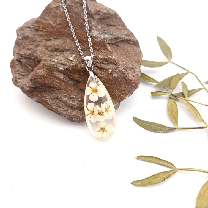 Živicový prívesok s kvietkom bielej limonky na oceľovej retiazke