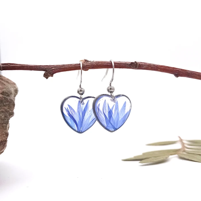 Náušničky v zaujímavom netradičnom tvare v krásnych modrých farbách ozajstných kvietkov nezábudky, ako modré nebo :)
